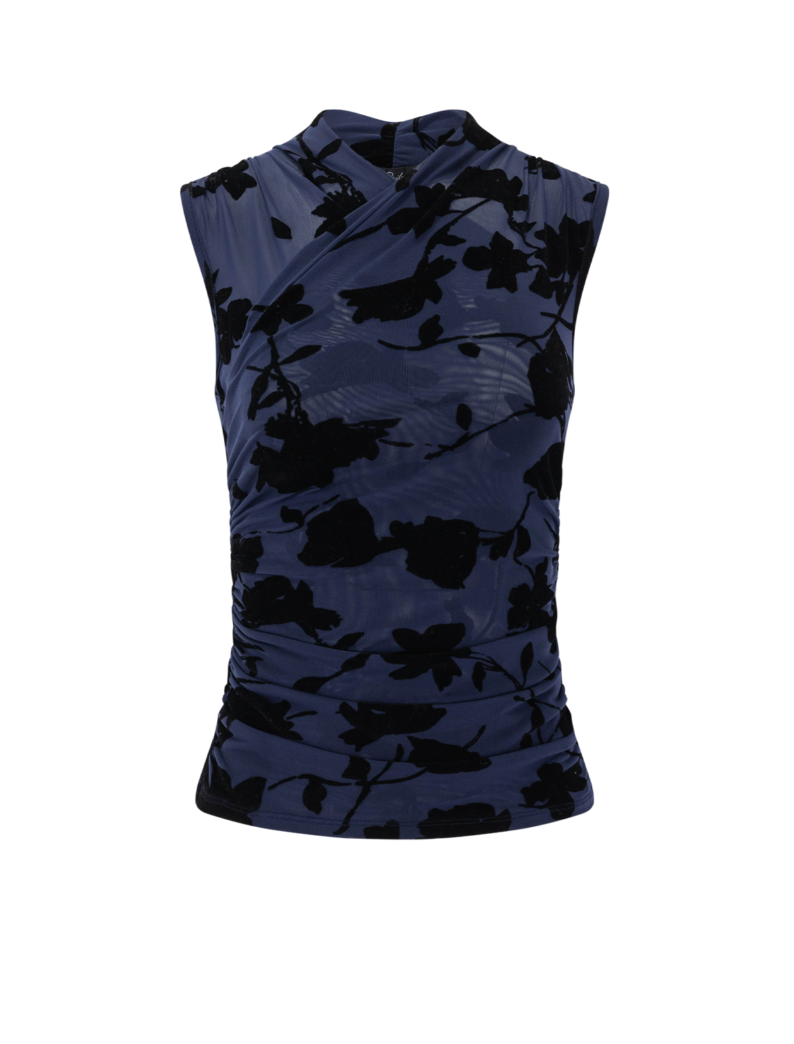 The Lauris makes an effortless statement. Made in premium stretch mesh with velvet-flocked floral motifs, it features a wrap-style chest, sleek sleeveless silhouette, side ruching, and a fully lined finish.