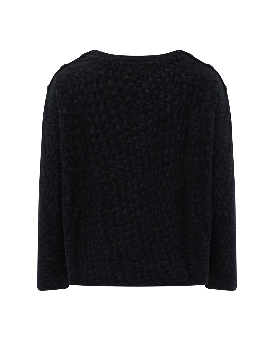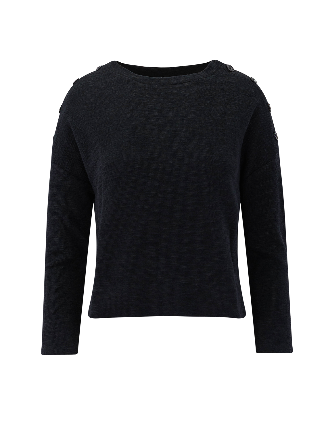Long-sleeve T-shirt in a fine irregular slub-yarn fleece. Shoulder button tab.