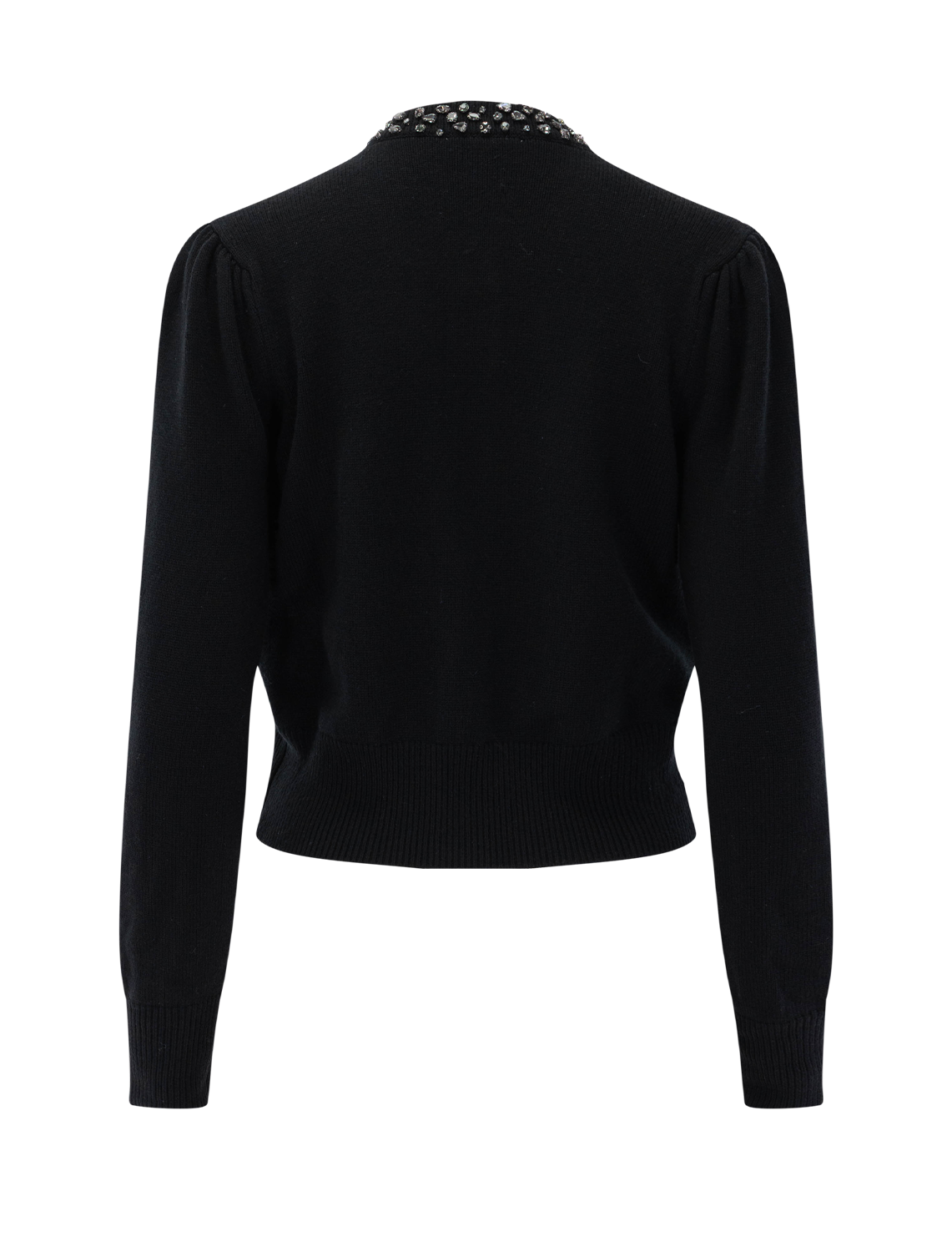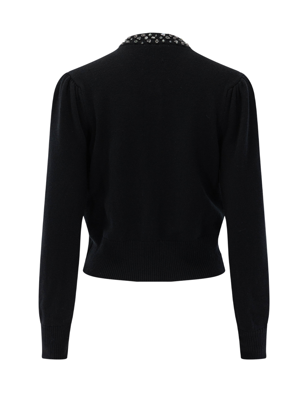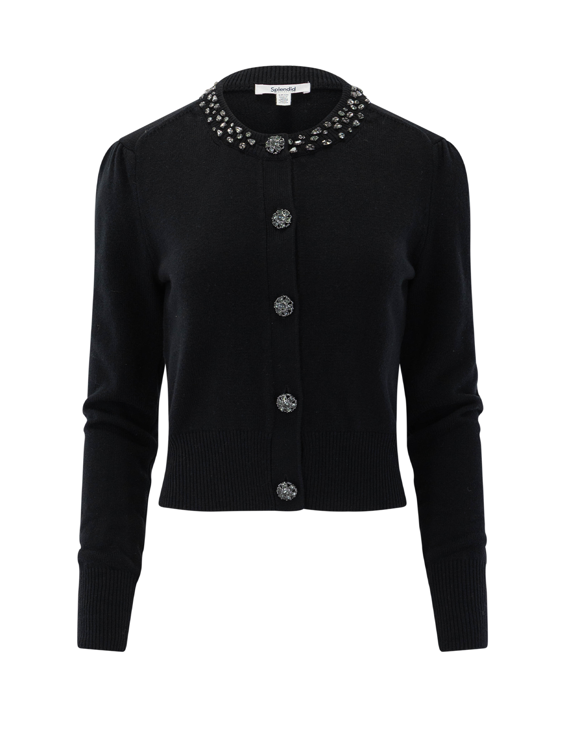 Meet the cardigan that feels just as special as it looks. The Montana Cardigan adds a touch of luxe to everyday dressing with its jeweled neckline and statement crystal buttons. Made from a soft, midweight knit, it's designed with subtle puff sleeves and a flattering, slightly cropped fit. Elegant yet easy-this is the layer that instantly elevates your everyday.