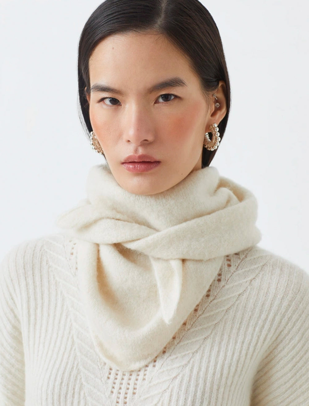 Suncoo Paris' Armini Scarf in Blanc. Designed to be worn across the shoulders, as a neck scarf, or as a hood for chilly temperatures ahead.