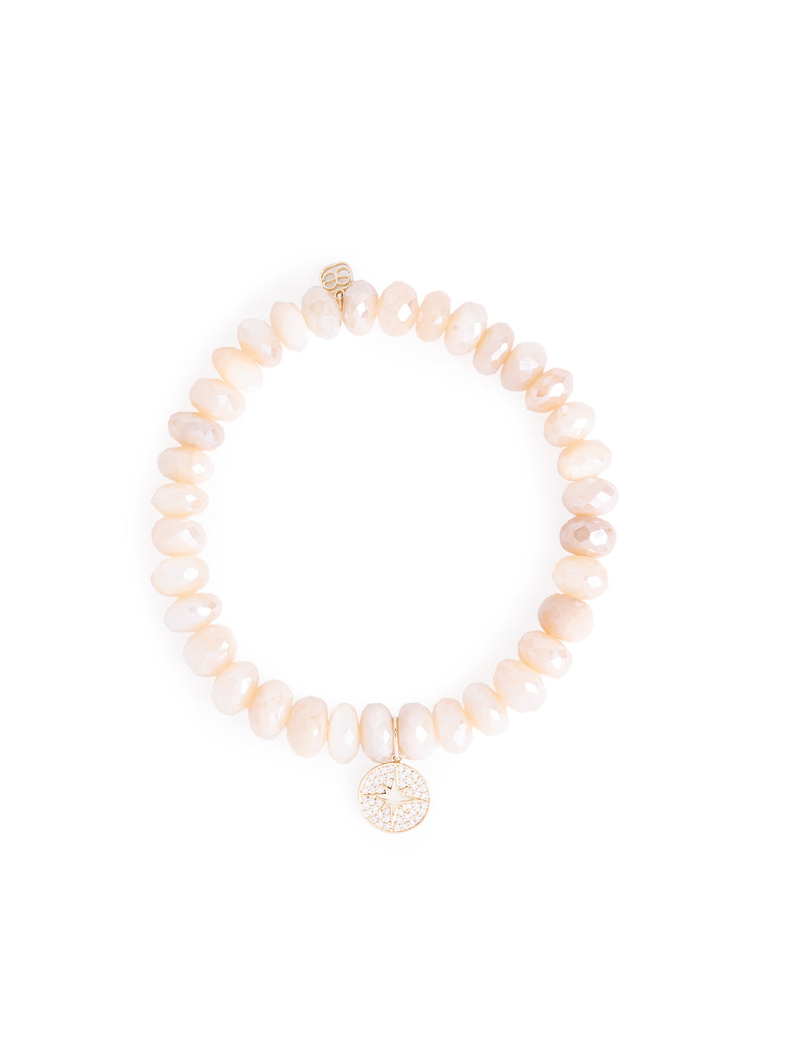 Sydney Evan's mini diamond starburst medallion on moonstone beaded bracelet.