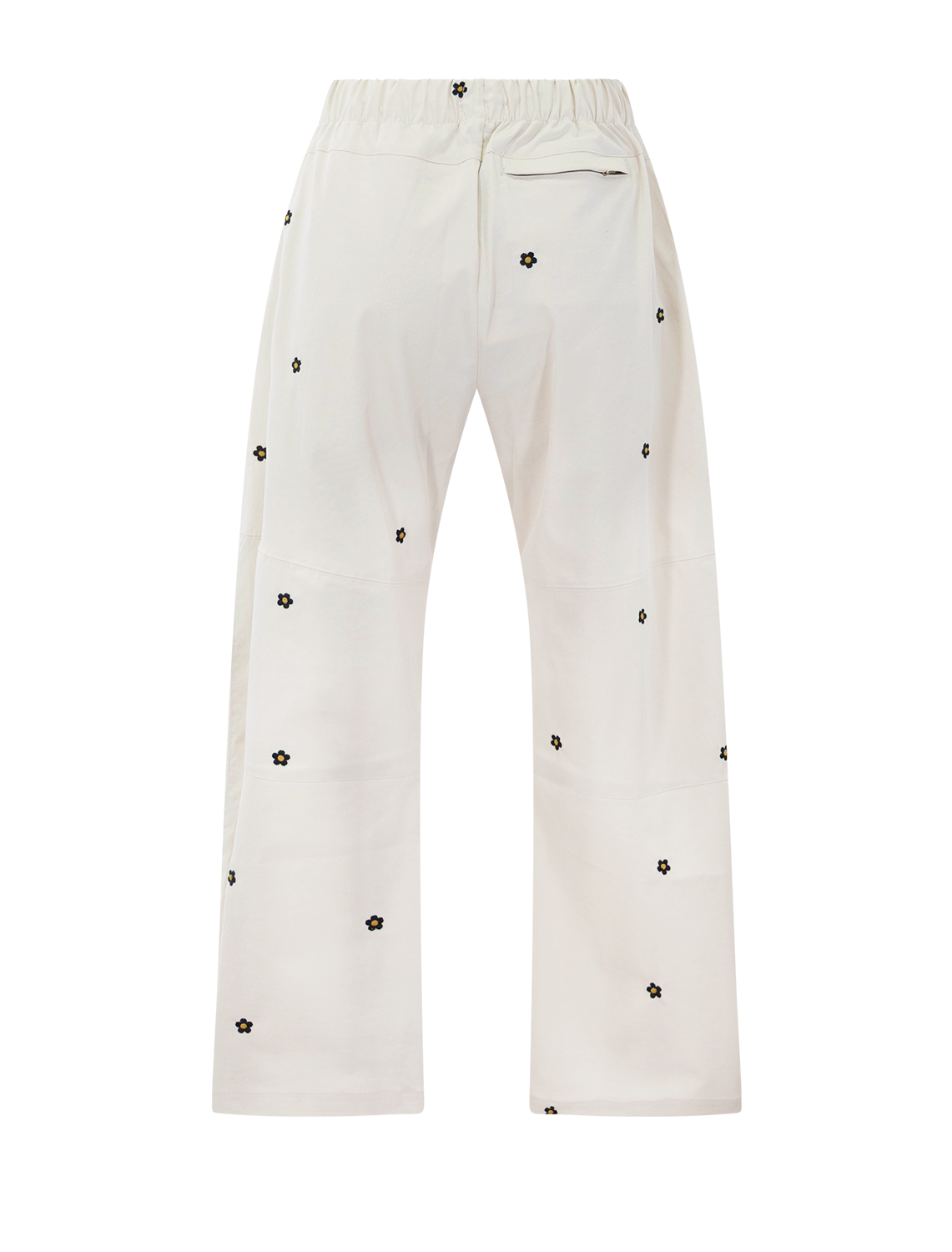 - delicate floral embroidery is thoughtfully scattered across the garment, lending a playful, almost ironic note to an otherwise classic utility style